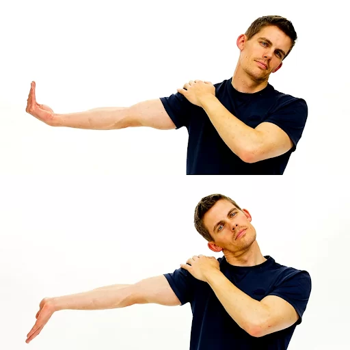Next, tilt your head away from your arm. Imagine your arm, neck, and head forming a diagonal line.